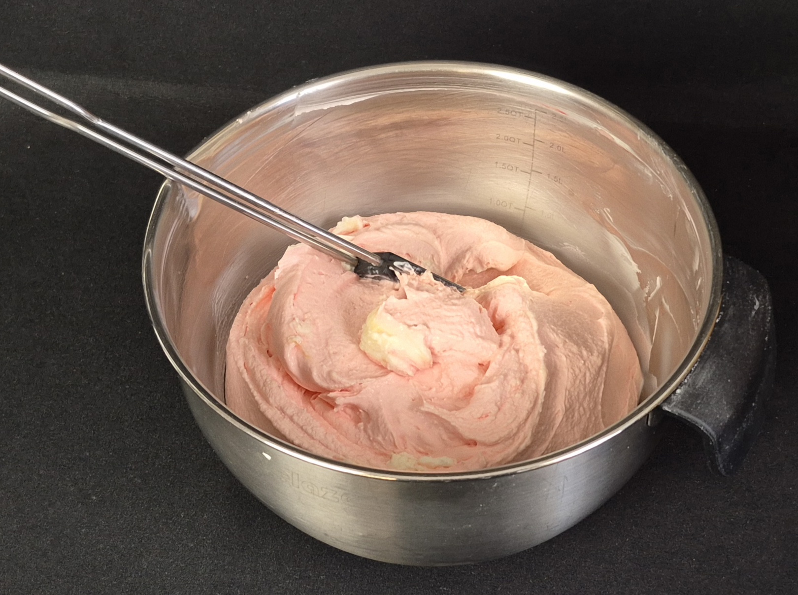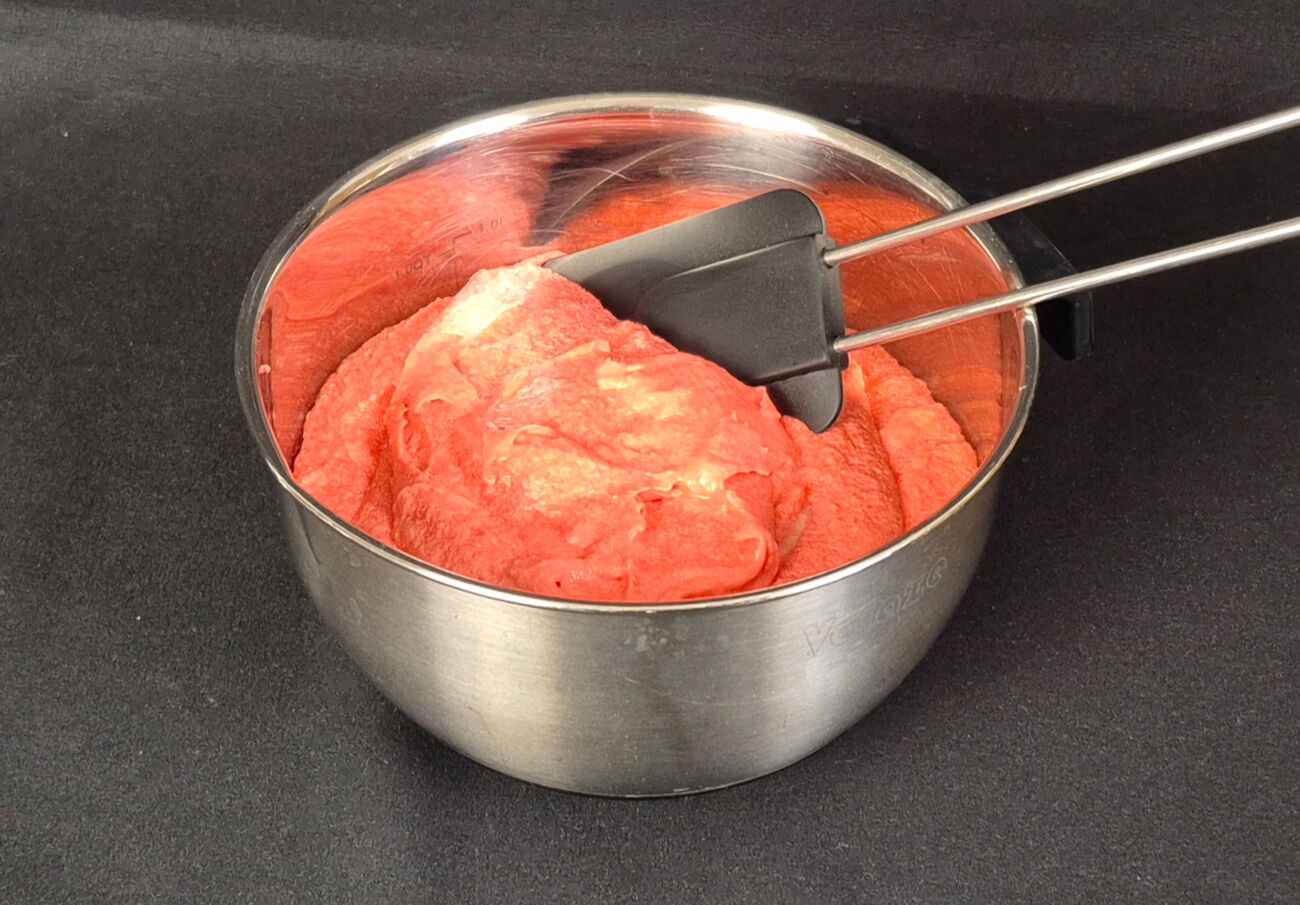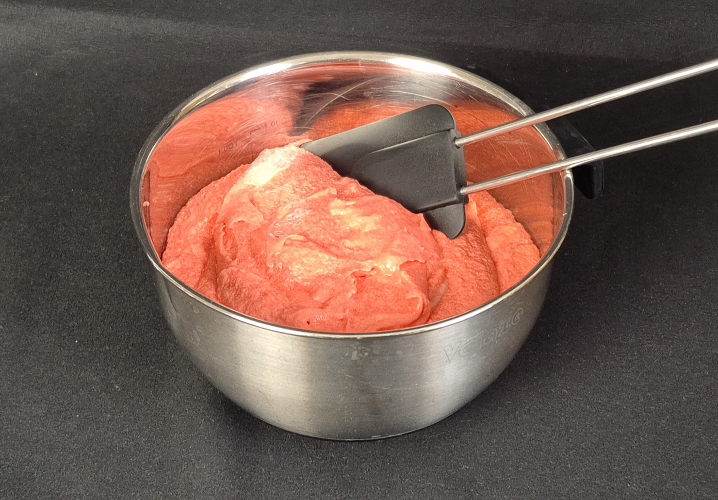 Für die Cremefüllung alle Zutaten zusammen verrühren und diese dann mit etwas roter Lebensmittelfarbe einfärben, sodass die fertige Mascarponecreme leicht pink - wie ein Gehirn - aussieht.