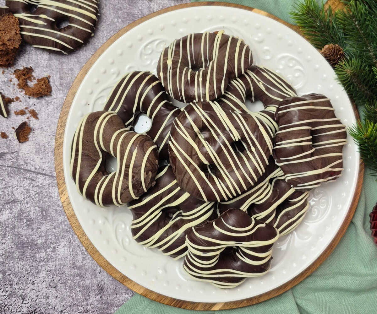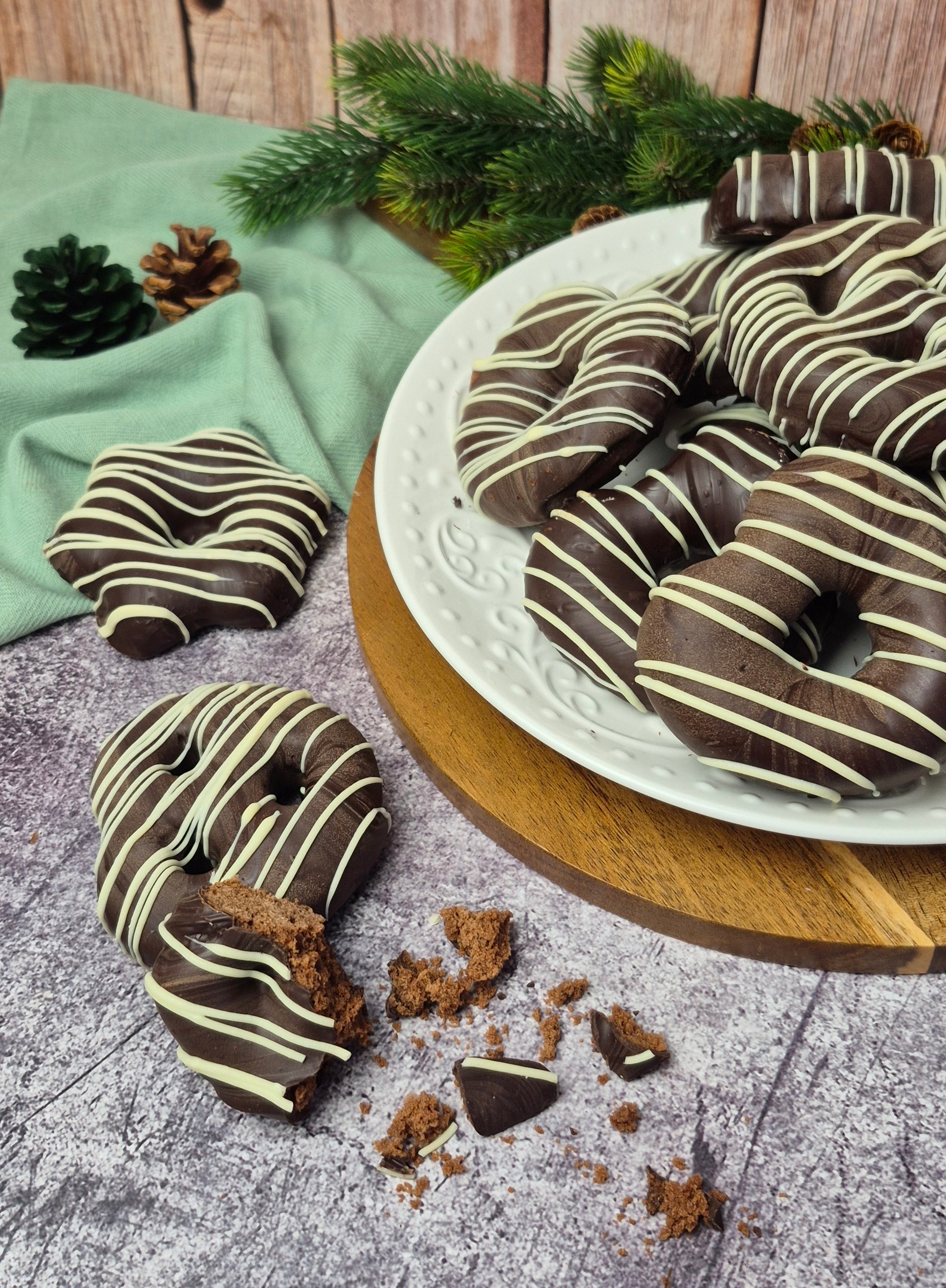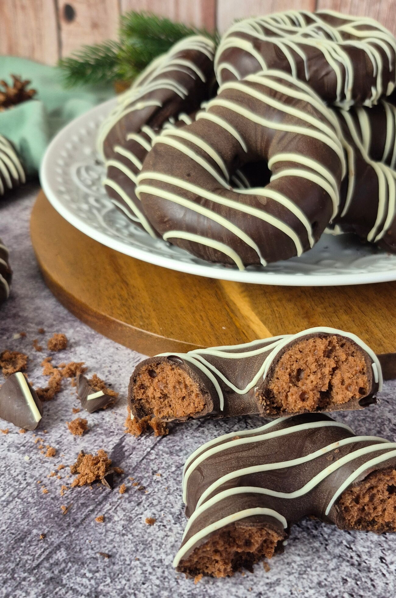 Die Lebkuchen mit der Schokoladenglasur überziehen und trocknen lassen.