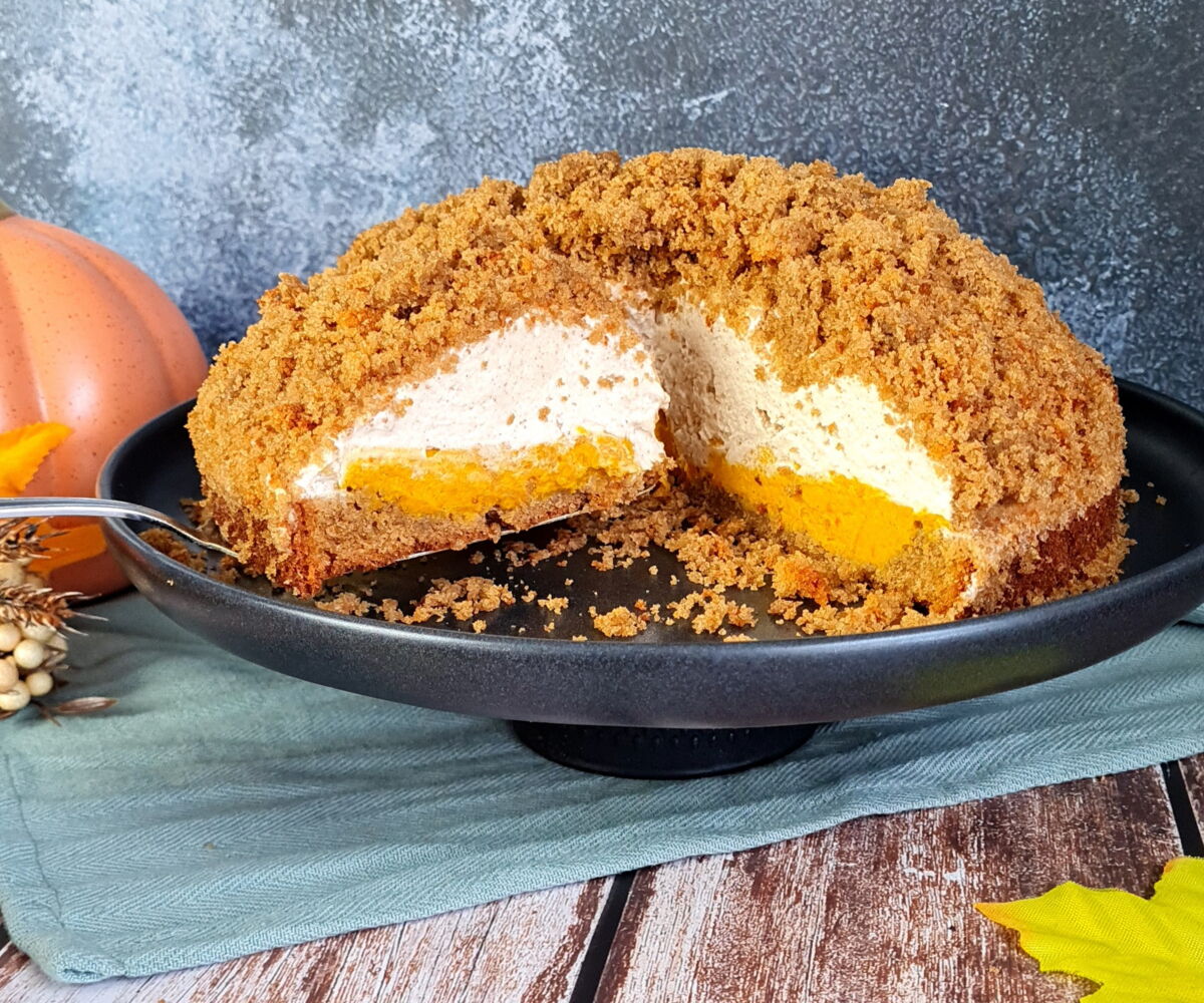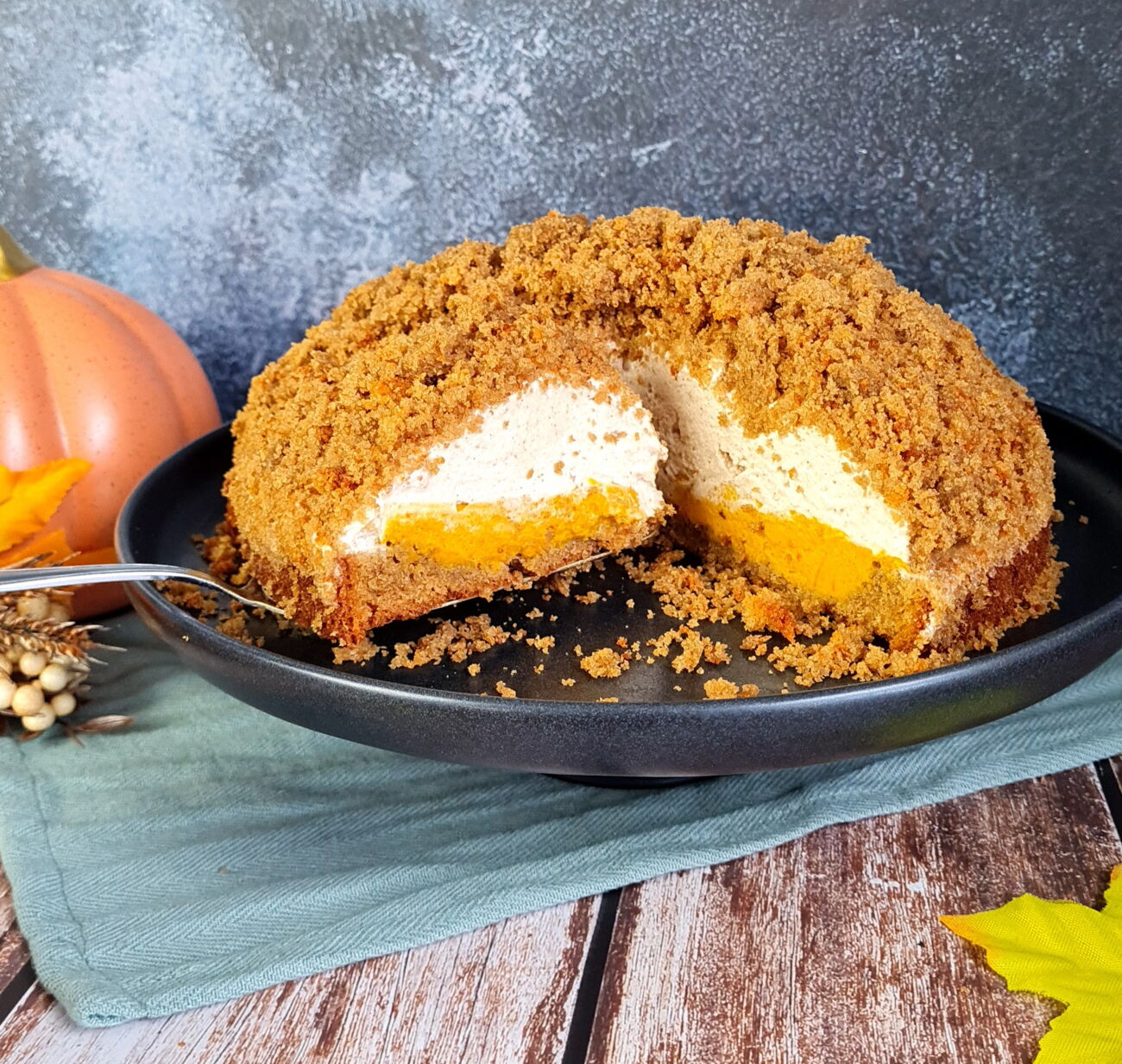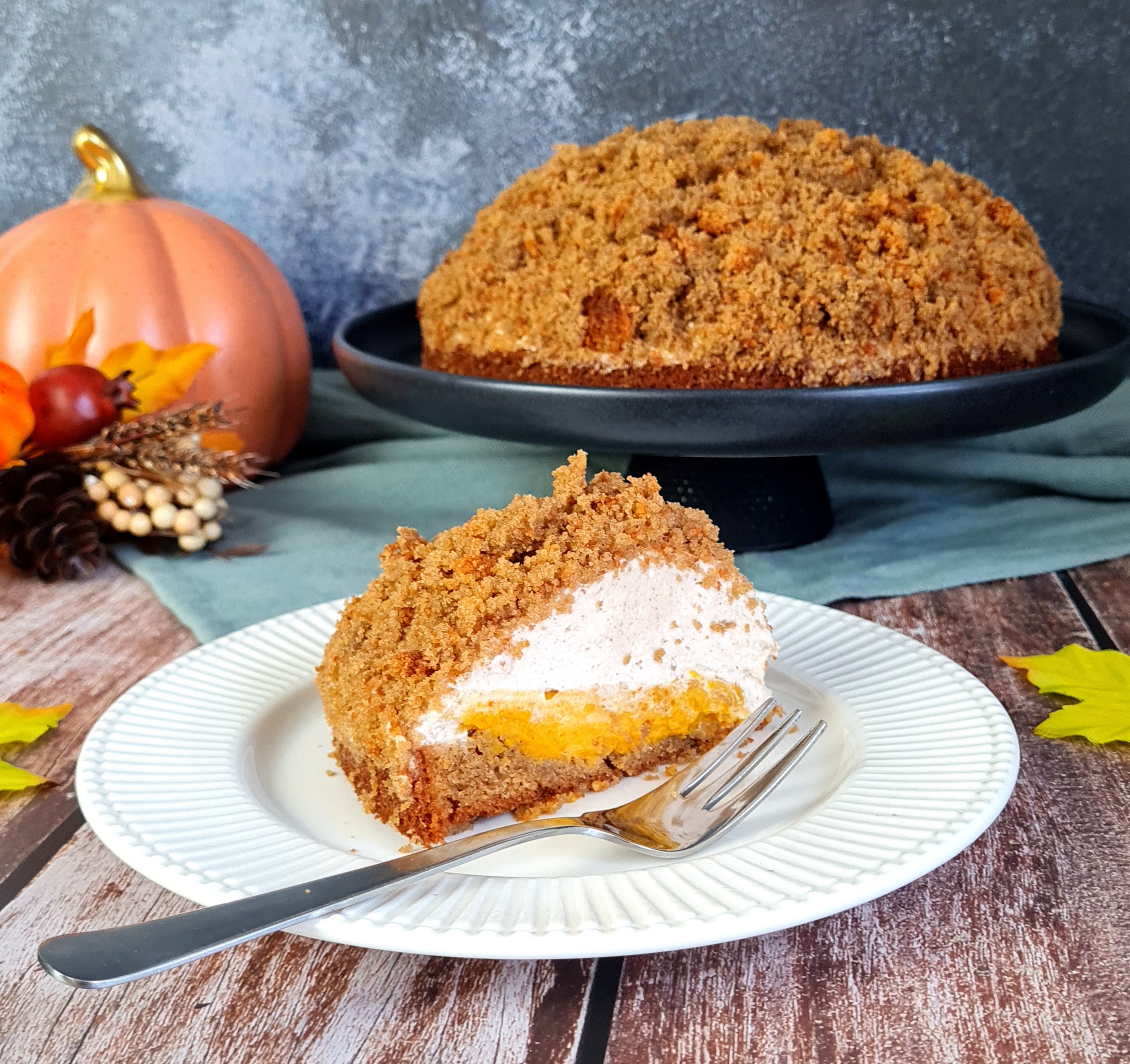 Der klassische Maulwurfkuchen - but make it Pumpkin-Spice Latte. Saftiger Kaffeekuchen trifft auf eine Cremefüllung aus würzigem Kürbis und zimtiger Mascarpone.