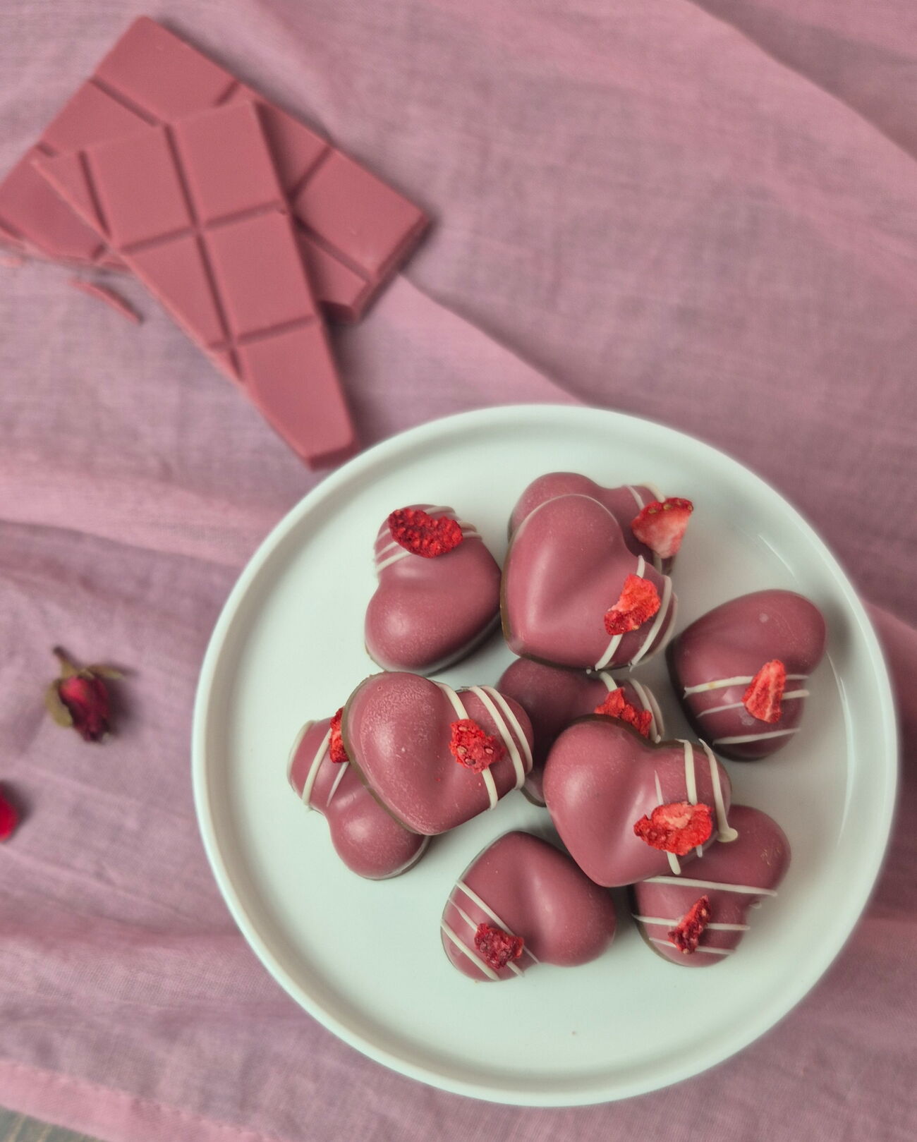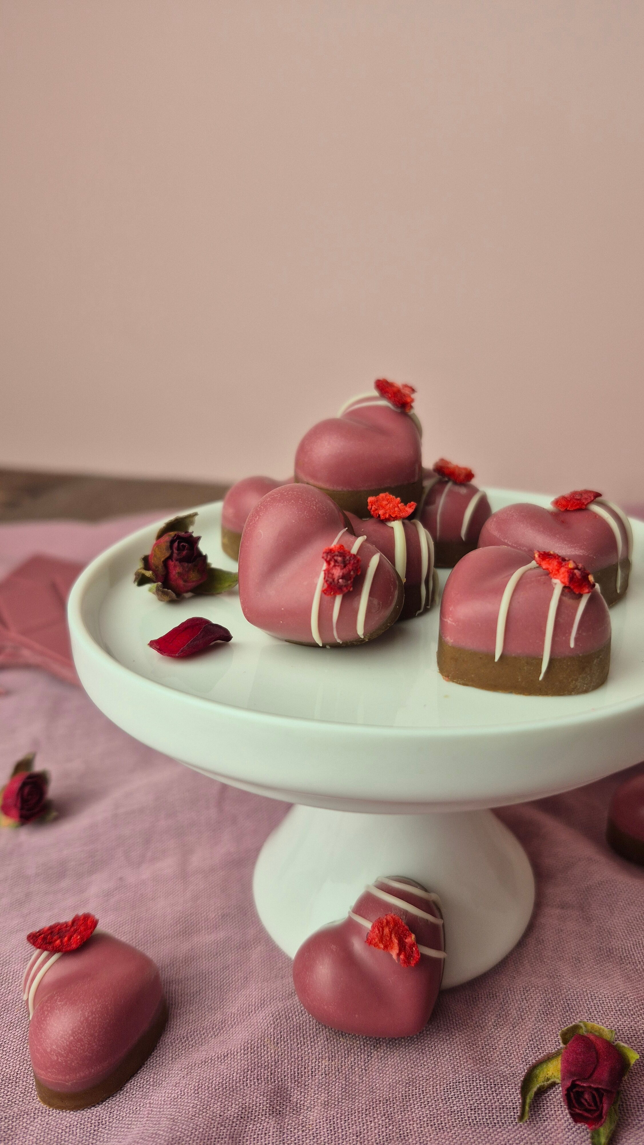 Daher habe ich mit viel Liebe und Sorgfalt diese kleinen Herzpralinen kreiert.