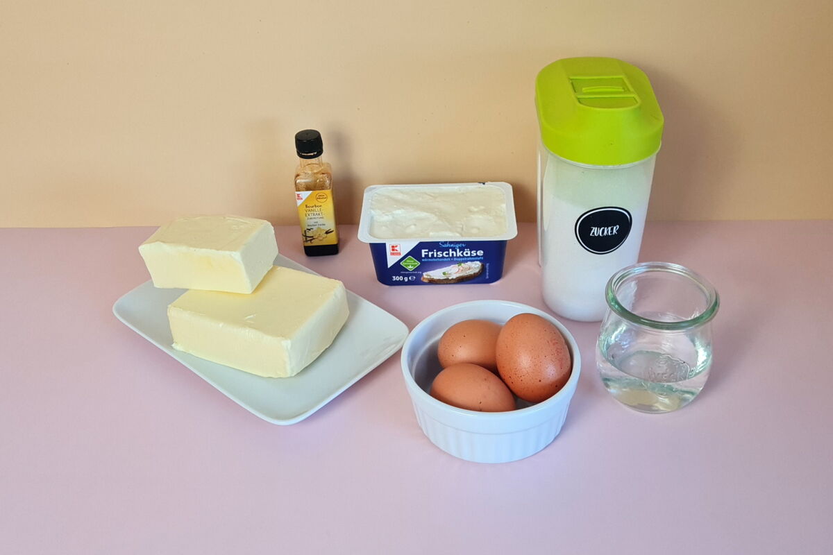 Die Butter in kleinen Stücken schneiden und zusammen mit der Vanillepaste nach und nach dazugeben, bis eine homogene Masse entsteht. Nun 3 El von der Buttercreme mit dem Frischkäse verrühren und dann zurück zur restlichen Buttercreme geben und alles kurz miteinander aufschlagen. Das Frosting in einen Spritzbeutel mit beliebiger Tülle versehen, geben und bis zur Weiterverarbeitung kühl stellen.