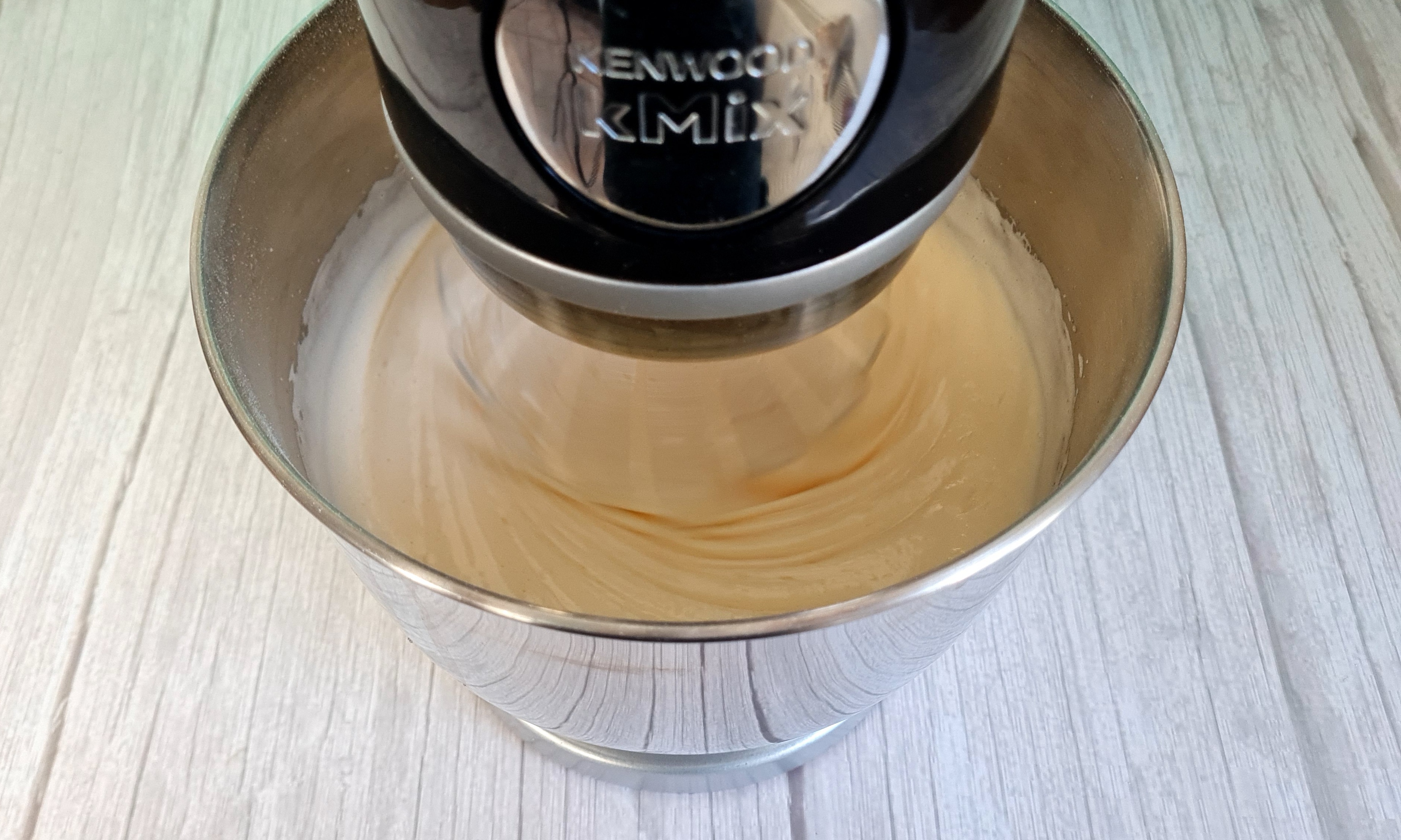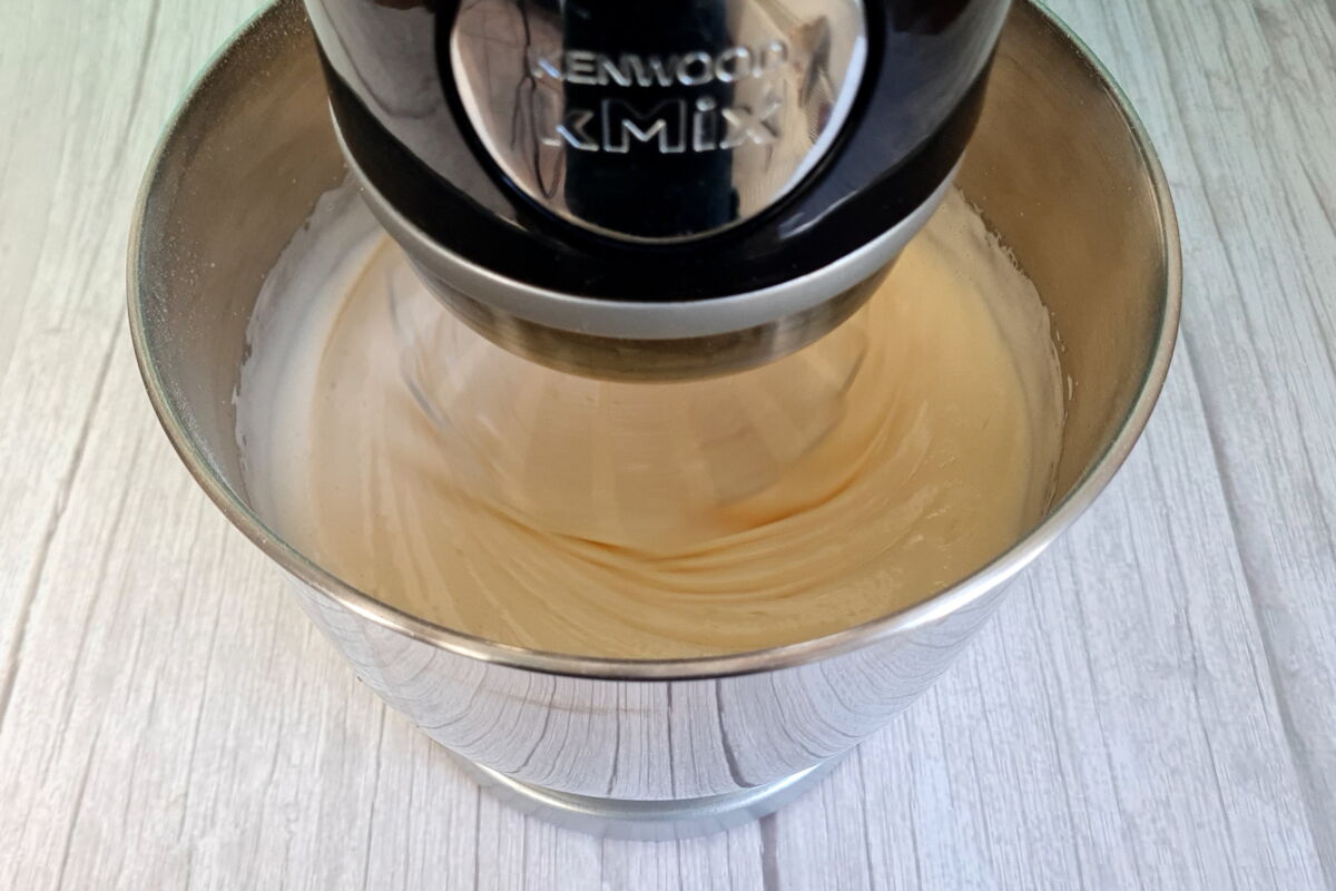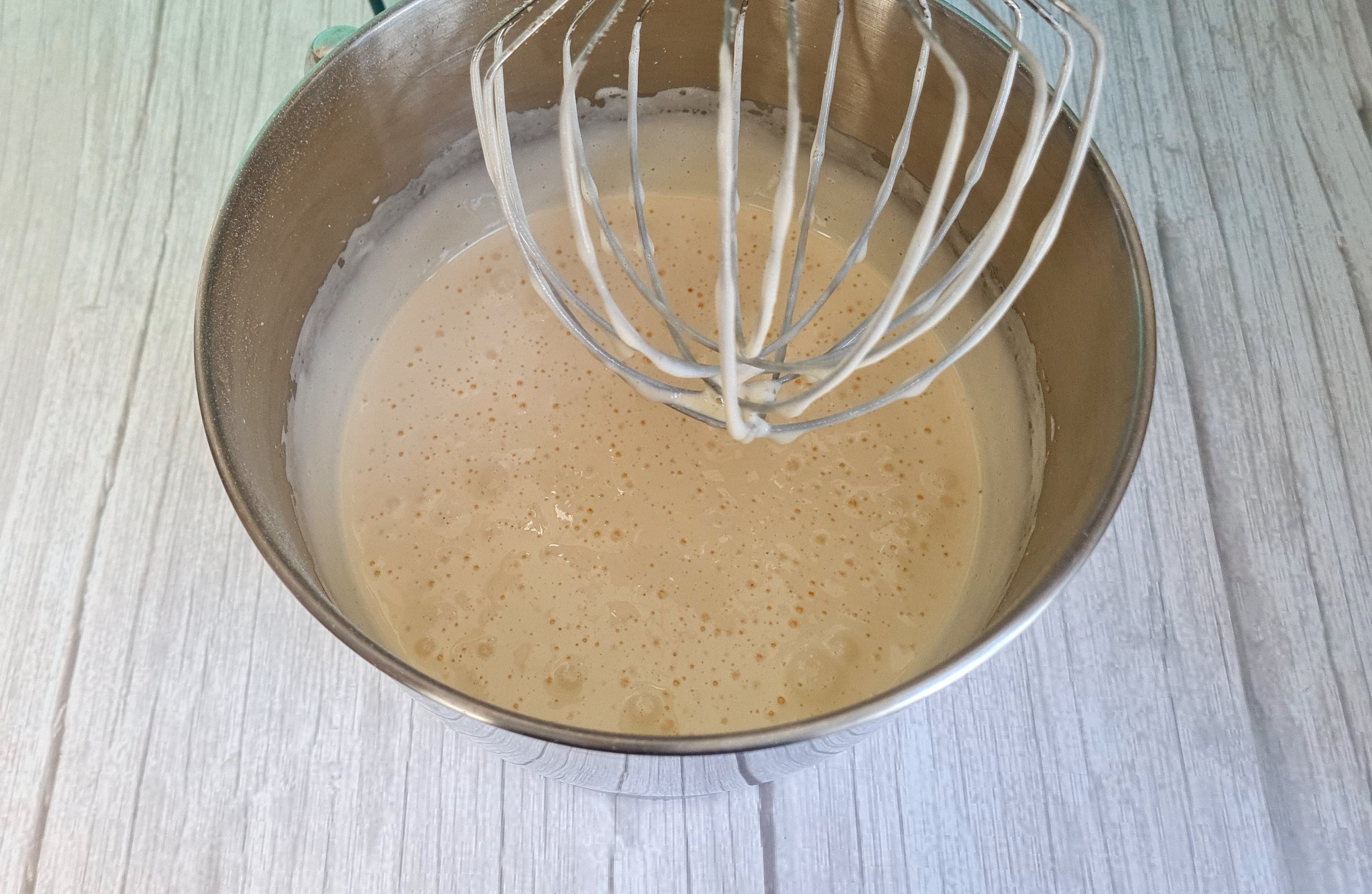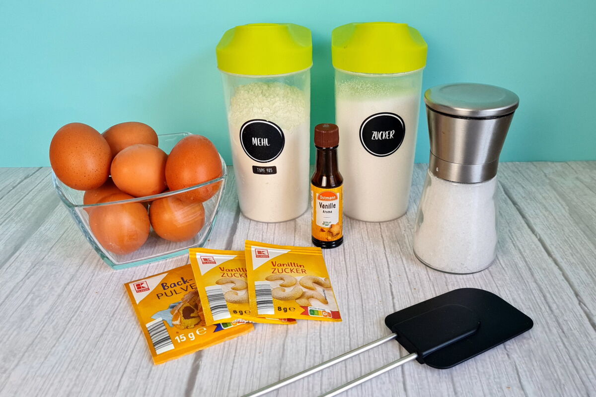 Für das Rezept habe ich die doppelte Menge von dem Biskuitteig zubereitet - siehe obere Abbildung.