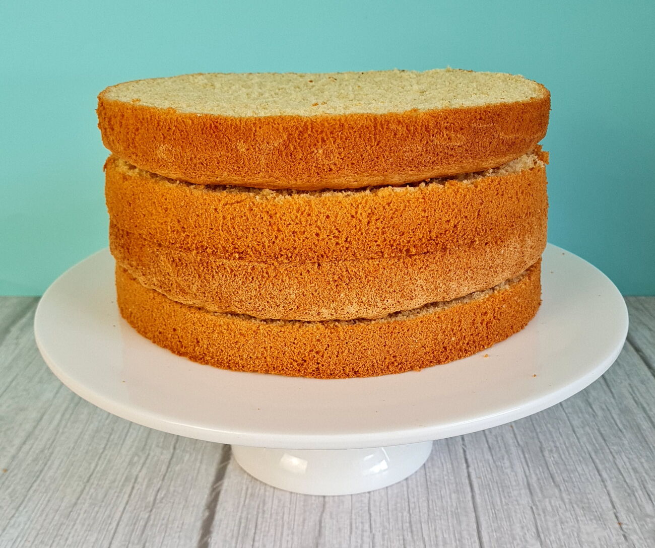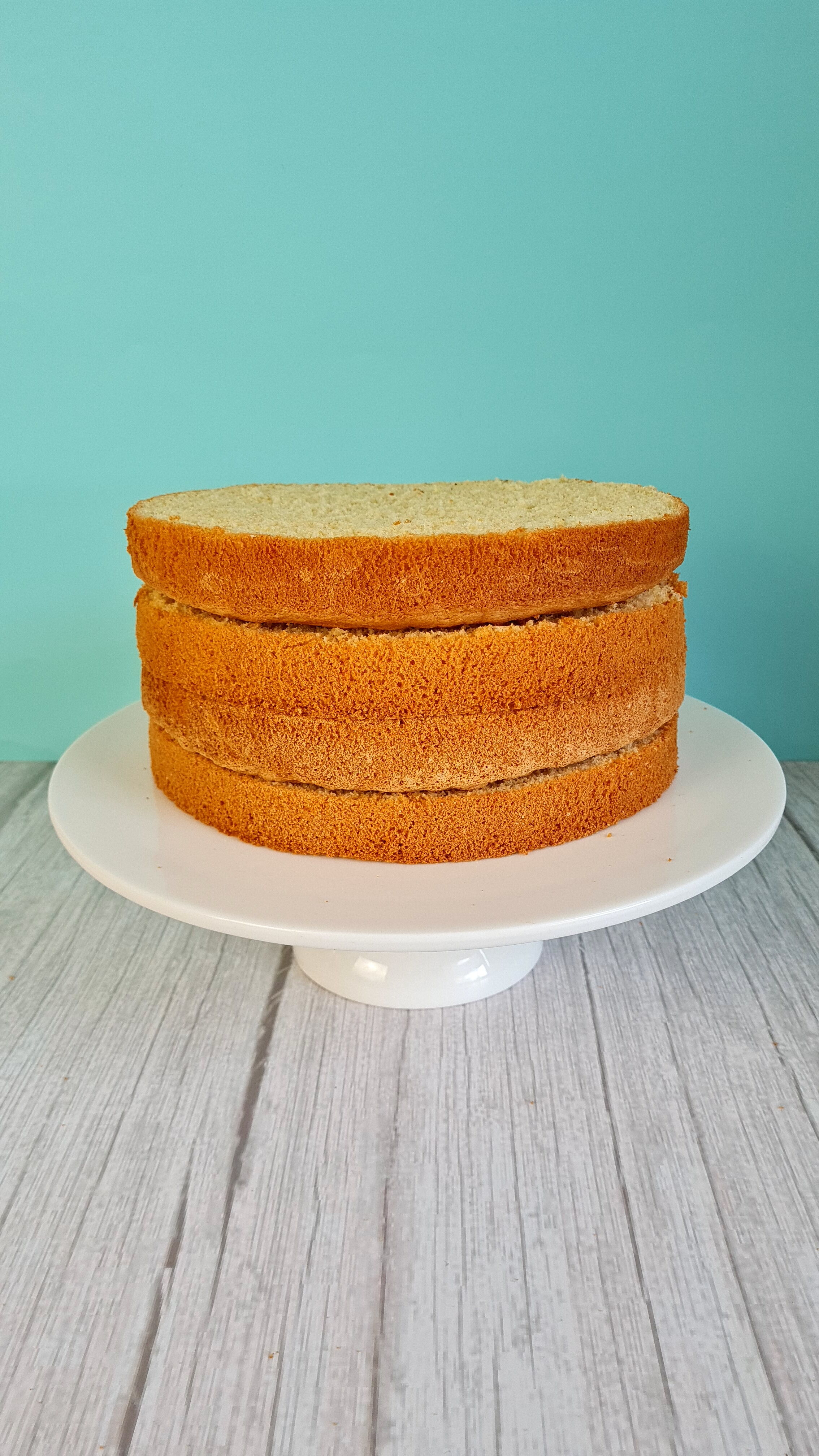 Für die Weiterverarbeitung (zum Beispiel für eine Torte) den Biskuitboden nach Belieben ein- bis zweimal waagerecht halbieren.