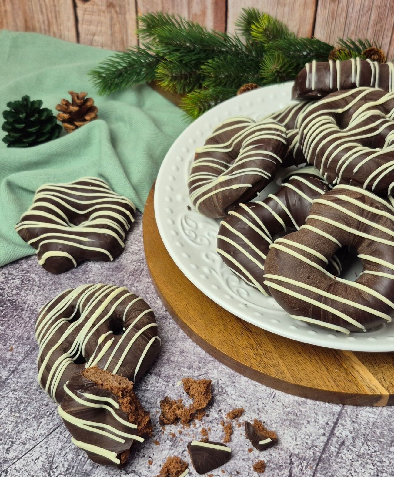 Die Lebkuchen mit der Schokoladenglasur überziehen und trocknen lassen.