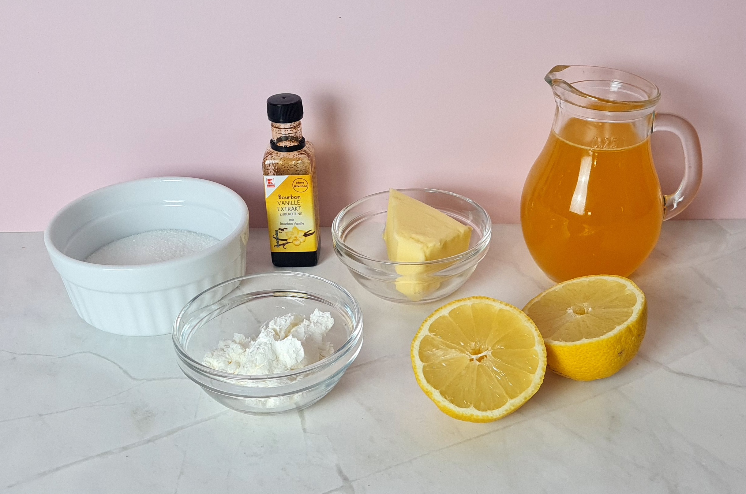Für das Maracujacurd zuerst 200ml von dem Saft zusammen mit dem Zitronensaft, Zucker und der Vanillepaste in einem Topf geben.