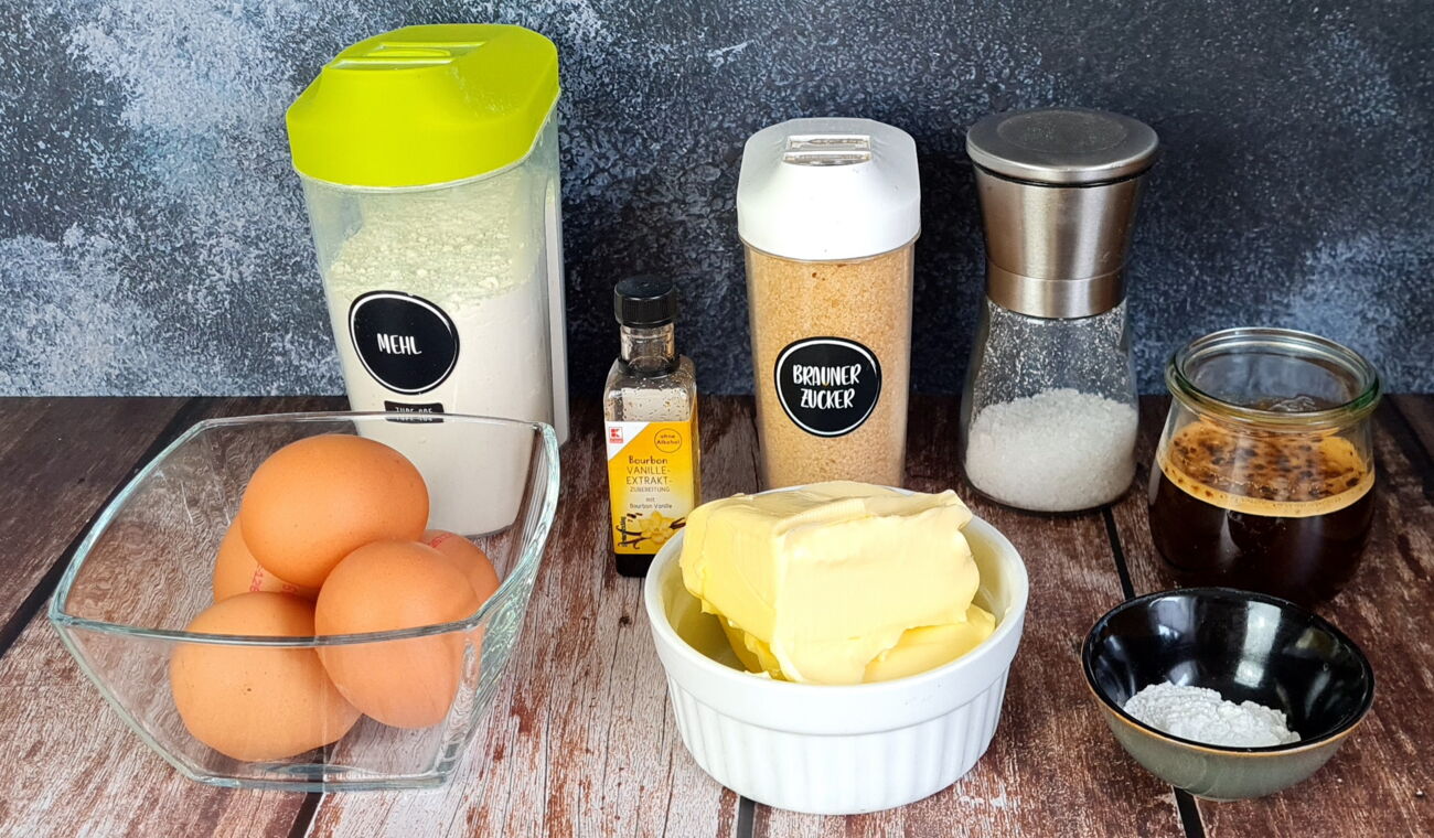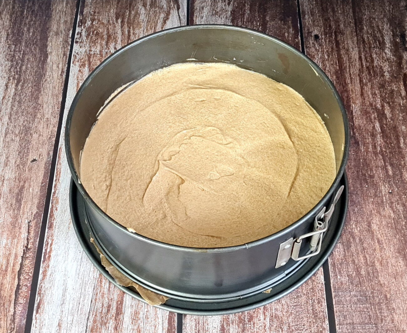 Für den Rührteig die weiche Butter zusammen mit dem Zucker, der Prise Salz und etwas Vanillepaste schön cremig aufschlagen. Währenddessen die Eier einzeln unter die Butter-Zucker-Masse rühren. Das Weizenmehl mit dem Backpulver vermischen und zusammen mit dem kalten Kaffee einrühren, sodass ein homogener Teig entsteht. Diesen dann in die Springform füllen und im Backofen für etwa 35 Minuten backen.