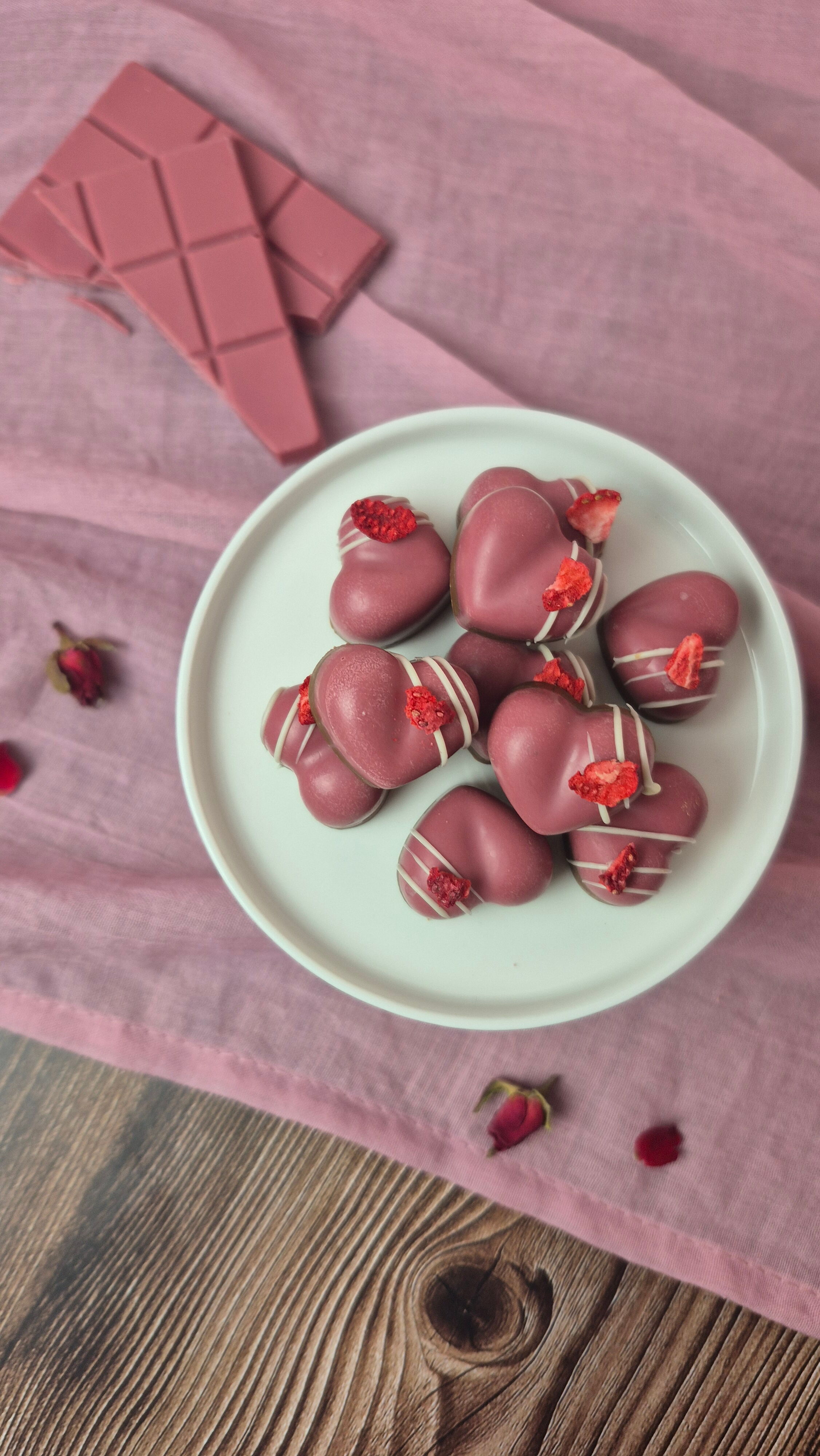 Daher habe ich mit viel Liebe und Sorgfalt diese kleinen Herzpralinen kreiert.