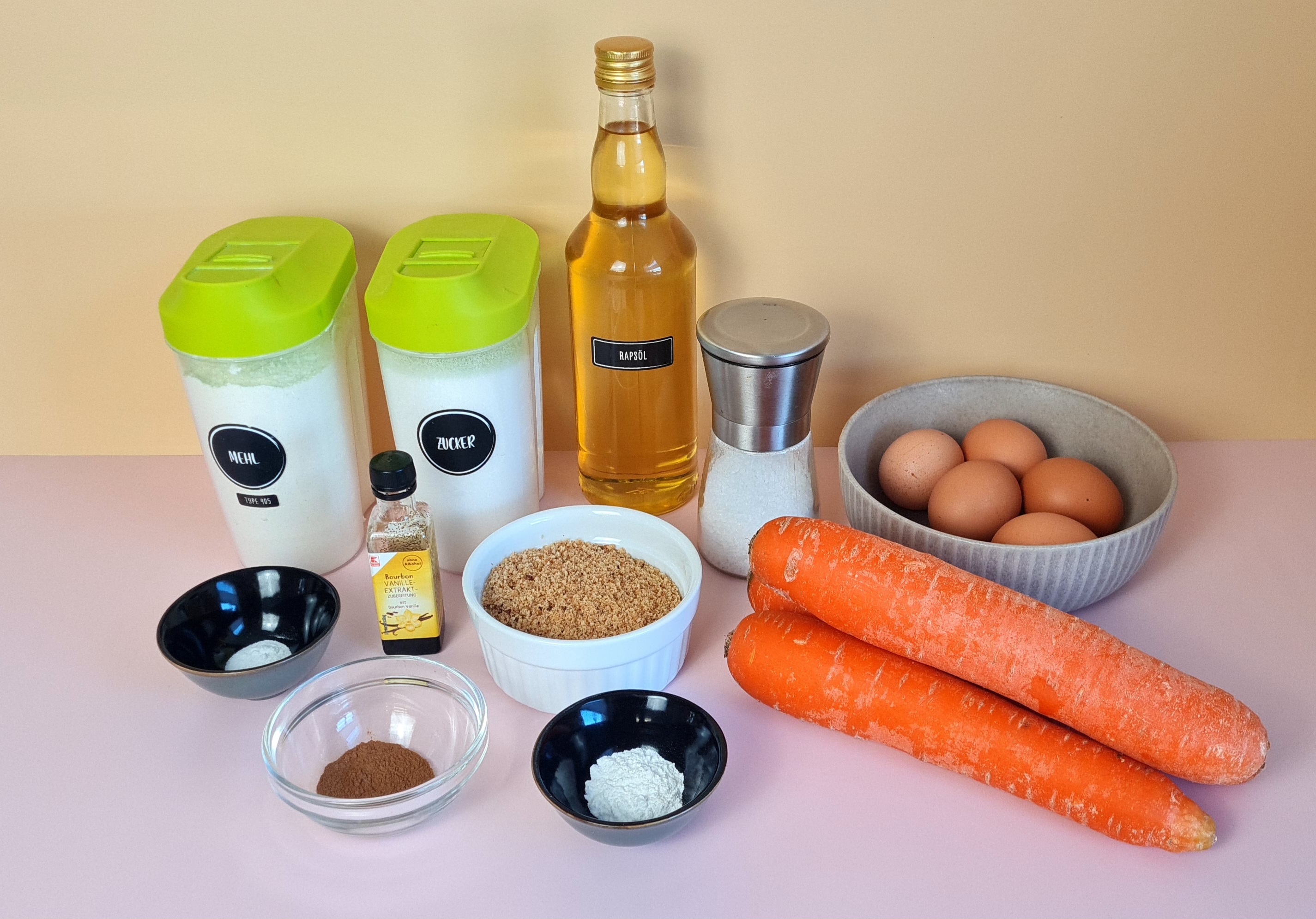 Für den Muffinteig die Eier zusammen mit dem Zucker auf höchster Stufe zu einer cremigen Masse schlagen. Währenddessen die Möhren schälen, in feine Streifen raspeln und die trockenen Zutaten in einer seperaten Schüssel vermischen. Nun das neutrale Speiseöl dazugeben und dann die geraspelten Möhren untermischen. Zum Schluss die trockenen Zutaten zur Masse sieben und unterheben.