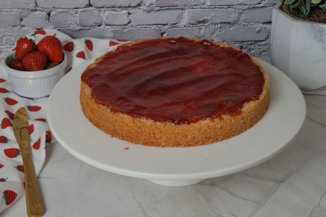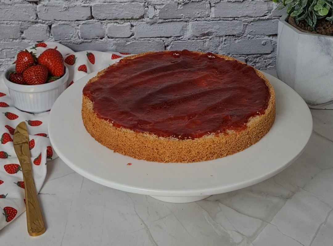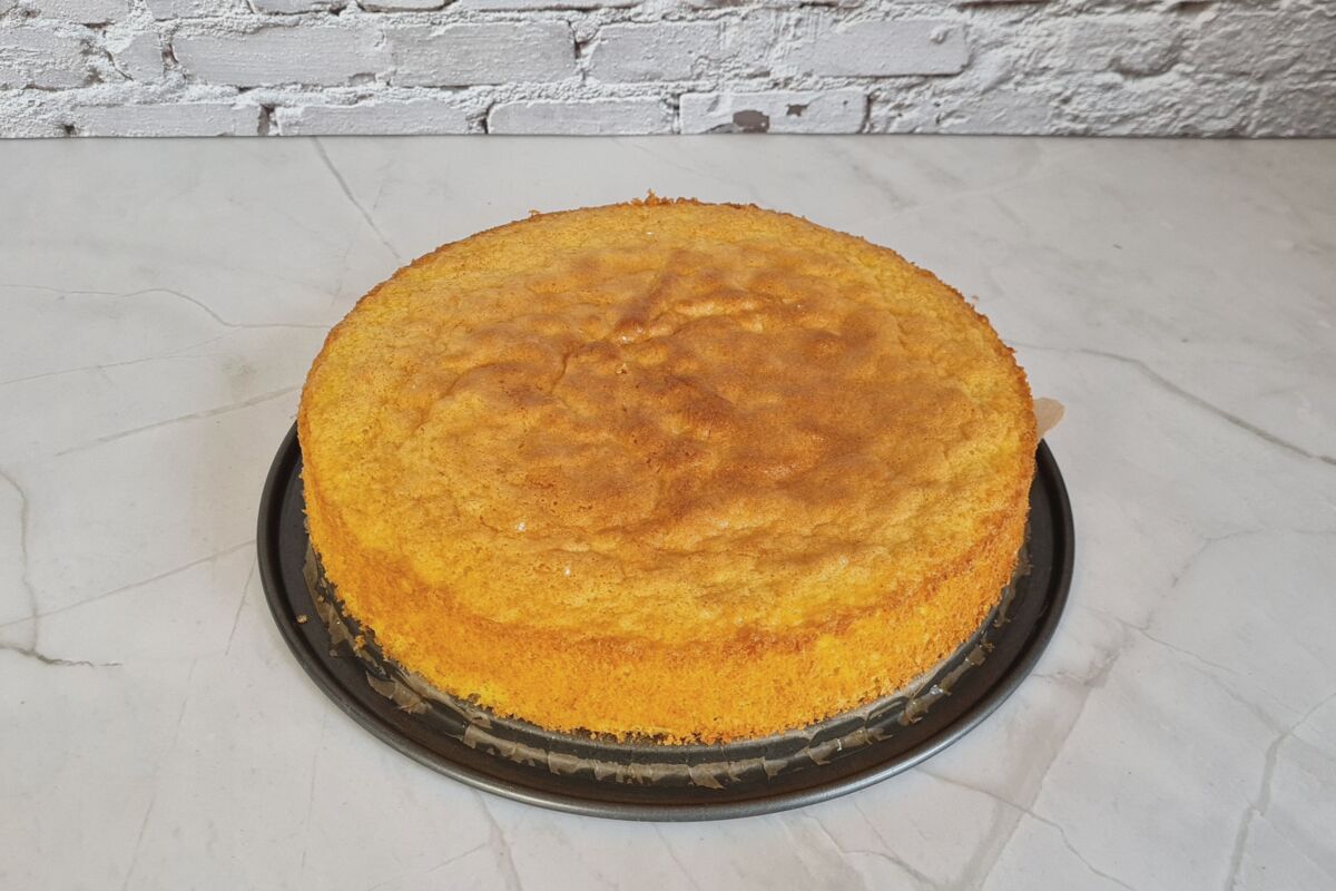 Am besten den Wiener Biskuitboden schon einen Tag vorher backen und foliert in den Kühlschrank legen, sodass dieser vollständig auskühlen und sich setzen kann!