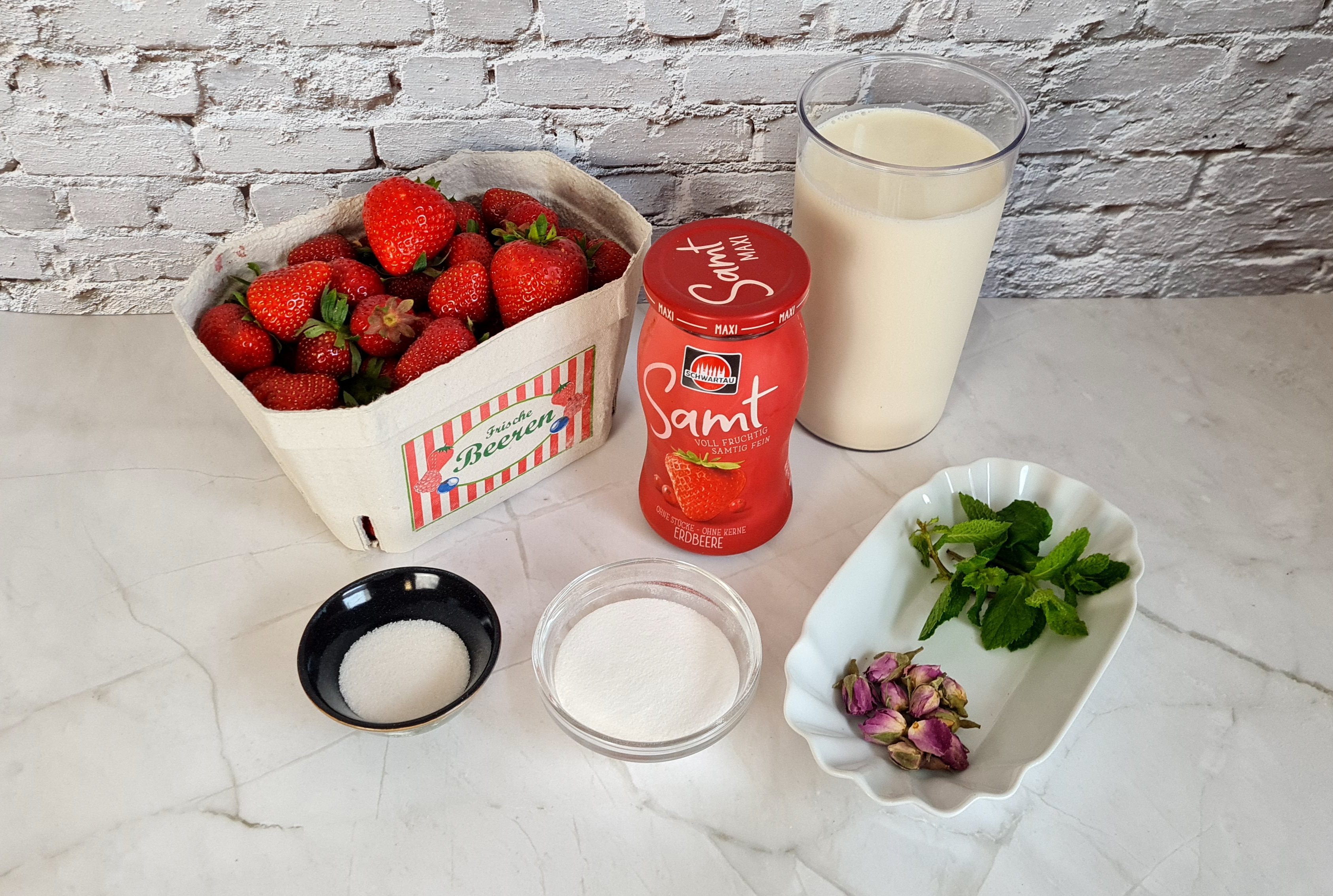 - 200-250g Erdbeeren, frisch
